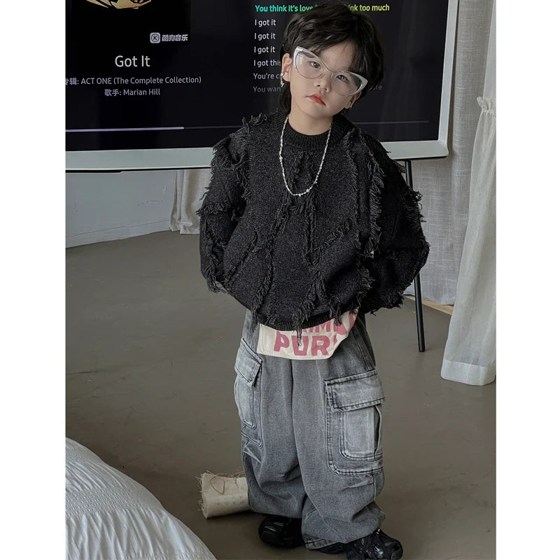 This cool and loose unisex sweater is perfect for kids. Made with quality materials, it provides comfort and style for everyday wear. The unique design allows for easy movement and breathability. Ideal for the fashion-forward child.