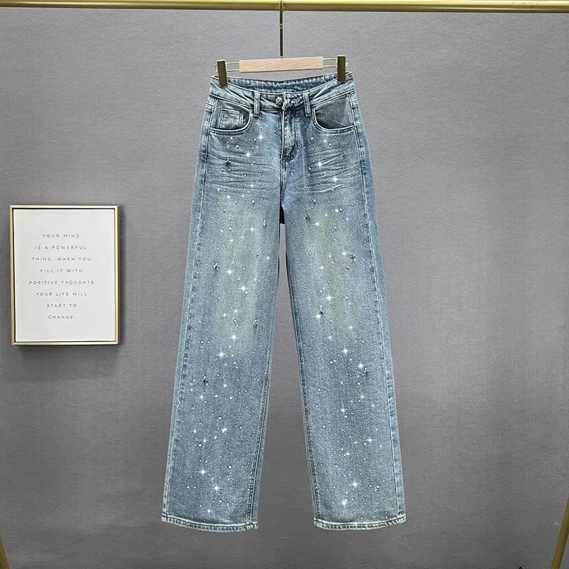 The wide leg style of these jeans provides comfort and freedom of movement, making them perfect for everyday wear or special occasions.