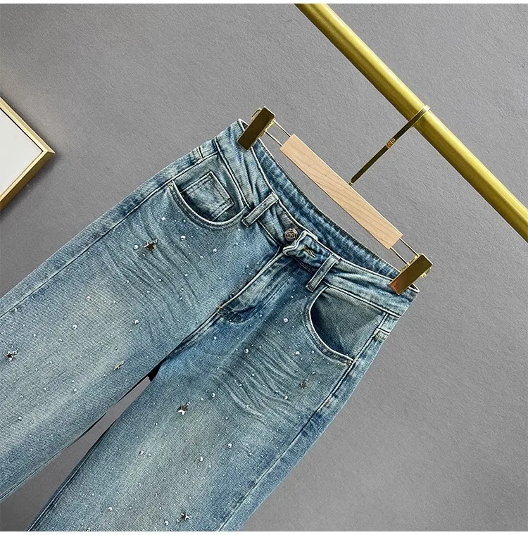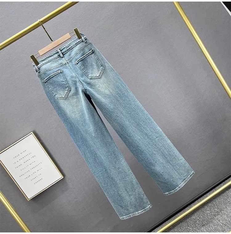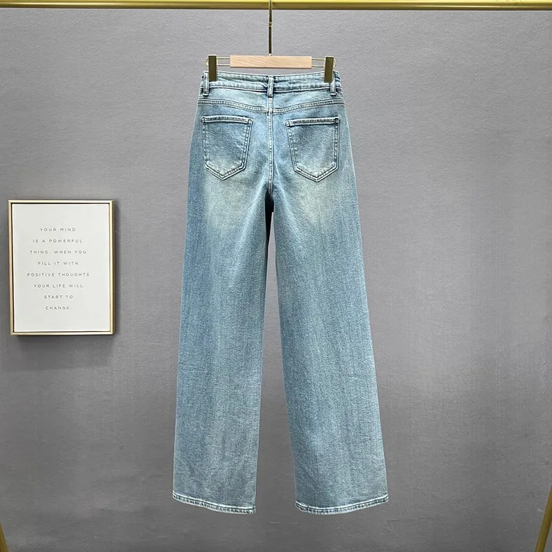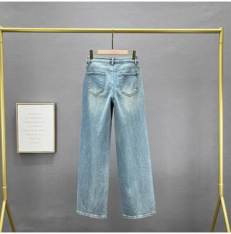 The high-waisted design of these jeans accentuates your waistline, creating a slimming effect and adding a touch of elegance to your outfit.