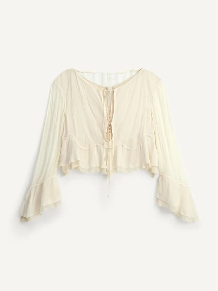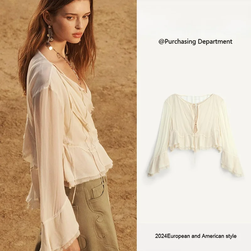 Featuring long sleeves with flared cuffs, this shirt adds a touch of elegance to any outfit.